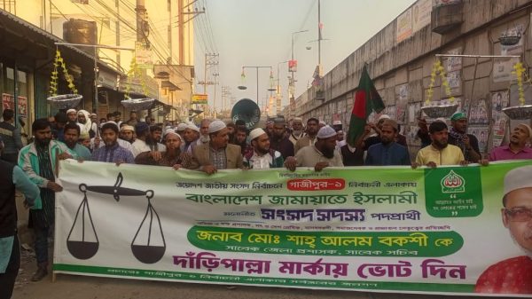 সব দলের দেখা শেষ- দাঁড়িপাল্লার বাংলাদেশ আজ ০৫ ডিসেম্বর (শুক্রবার) গাজীপুর জেলার কালিয়াকৈর উপজেলার সফিপুর বাজার ওয়ামী মসজিদ কমপ্লেক্সে এর সামনে থেকে বাদ আসর বাংলাদেশ জামায়াতে ইসলামী মনোনীত গাজীপুর-০১ (কালিয়াকৈর)