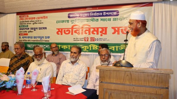 ইসলামী সমাজ জন আকাঙ্ক্ষায় পরিণত হয়েছে — ঢাকাস্থ্য কুষ্টিয়া বাসীদের মতবিনিময় অনুষ্ঠানে:- মোঃ মোবারক হোসাইন বাংলাদেশ জামায়াতে ইসলামীর কেন্দ্রীয় নির্বাহী পরিষদ সদস্য, ঢাকা ১৩ আসনের মনোনীত প্রার্থী ও অনুষ্ঠানের প্রধান