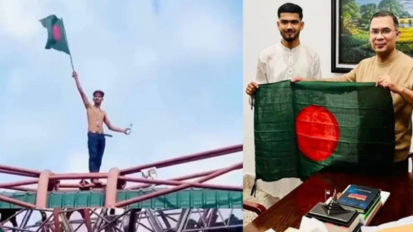 জনাব তারেক রহমানকে জু’লাইয়ে উড়ানো সেই পতাকা উপহার দিলেন
